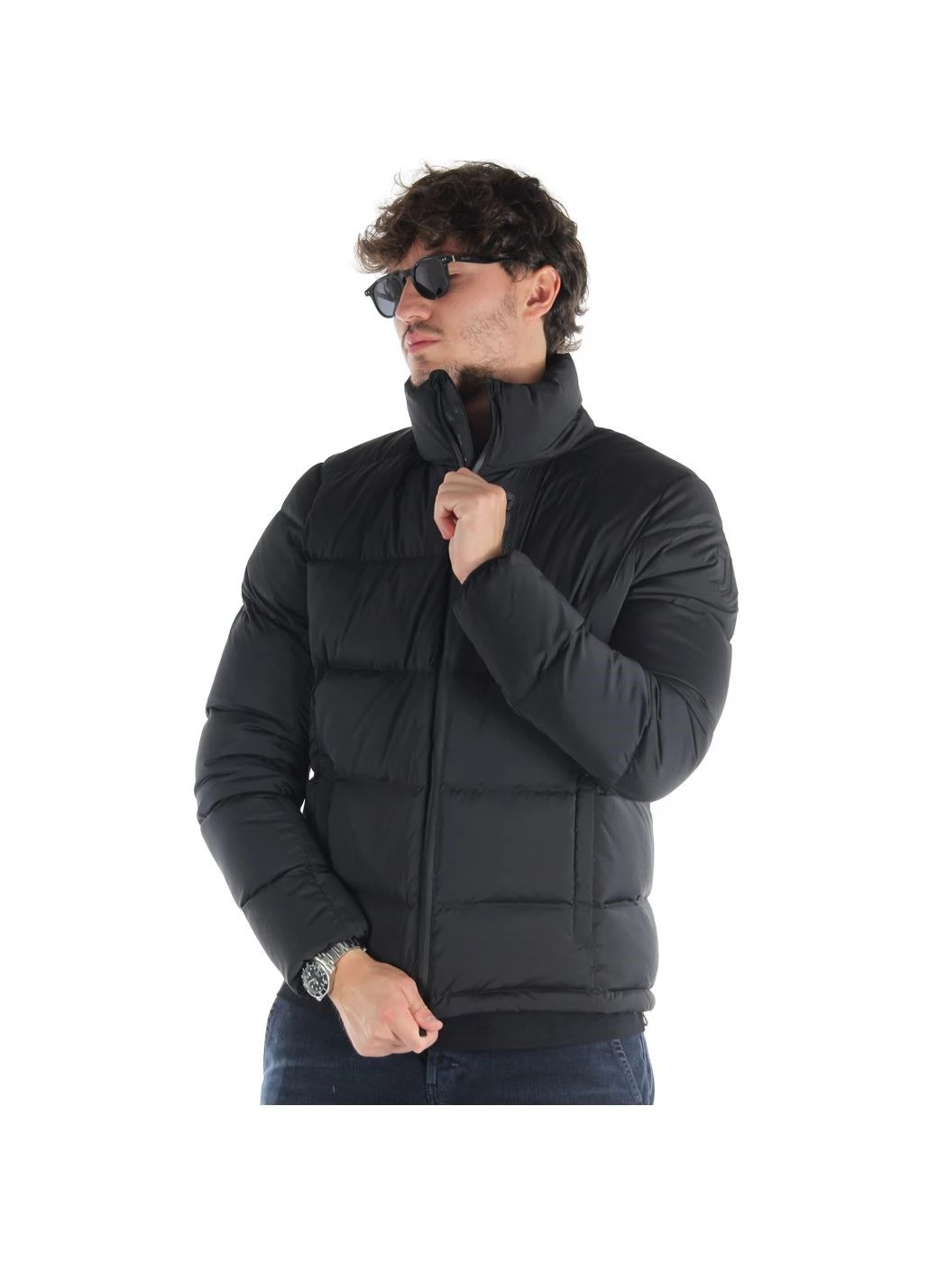 Down jacket number, exclusive indeed. Taped zip, elasticated softshell outer fabric