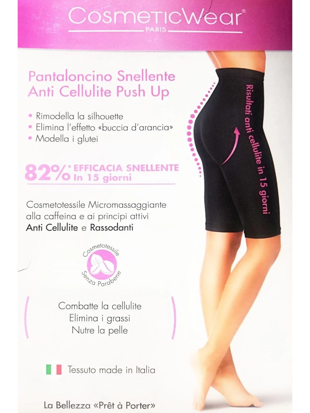cod. SHORT-SNELLENTE Ciclista a vita alta Snellente Anticellulite Cosmeticwear. Rimodella la siluette elimina l 'effetto buccia d arancia, modella i gluitei. 82% efficacia snellente in 15 giorni