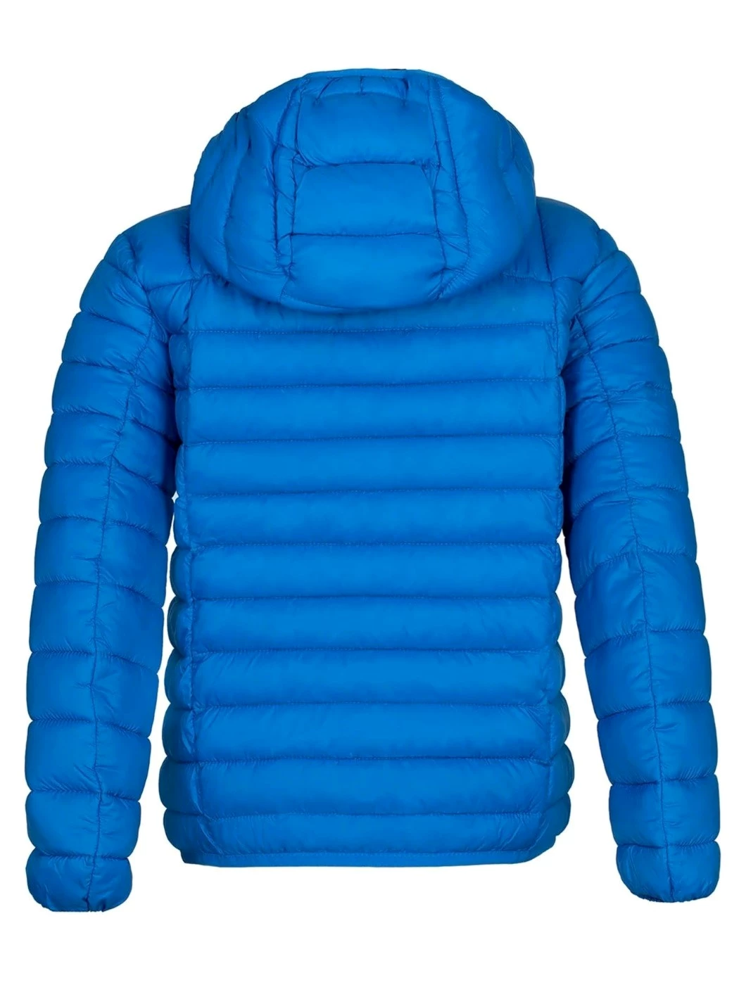 Il piumino è confezionato con tessuti riciclati che provengono da indumenti dismessi e offcuts di produzione; l'imbottitura, soffice e calda, è realizzata invece in poliestere proveniente dal riciclo di bottiglie di plastica.