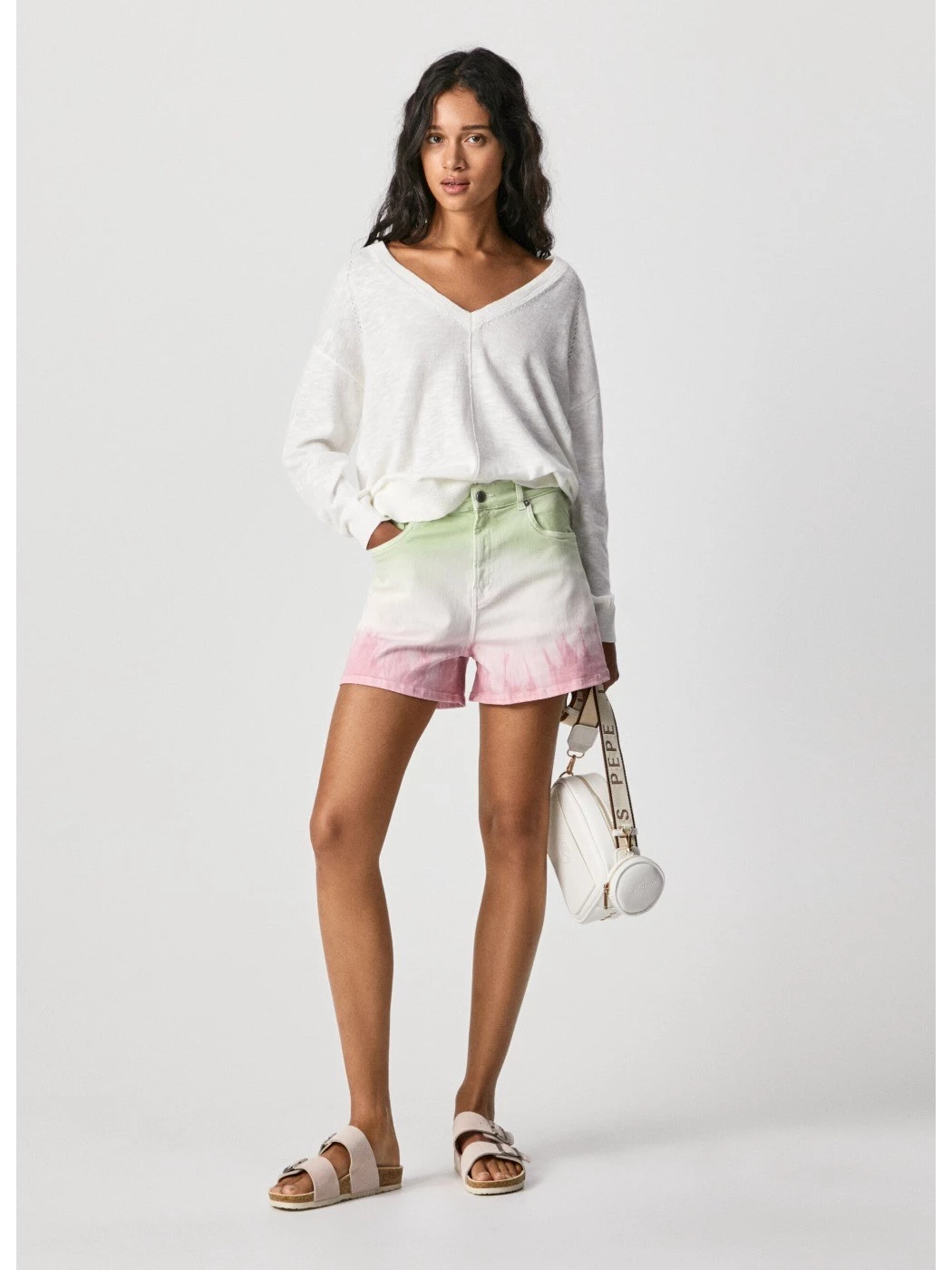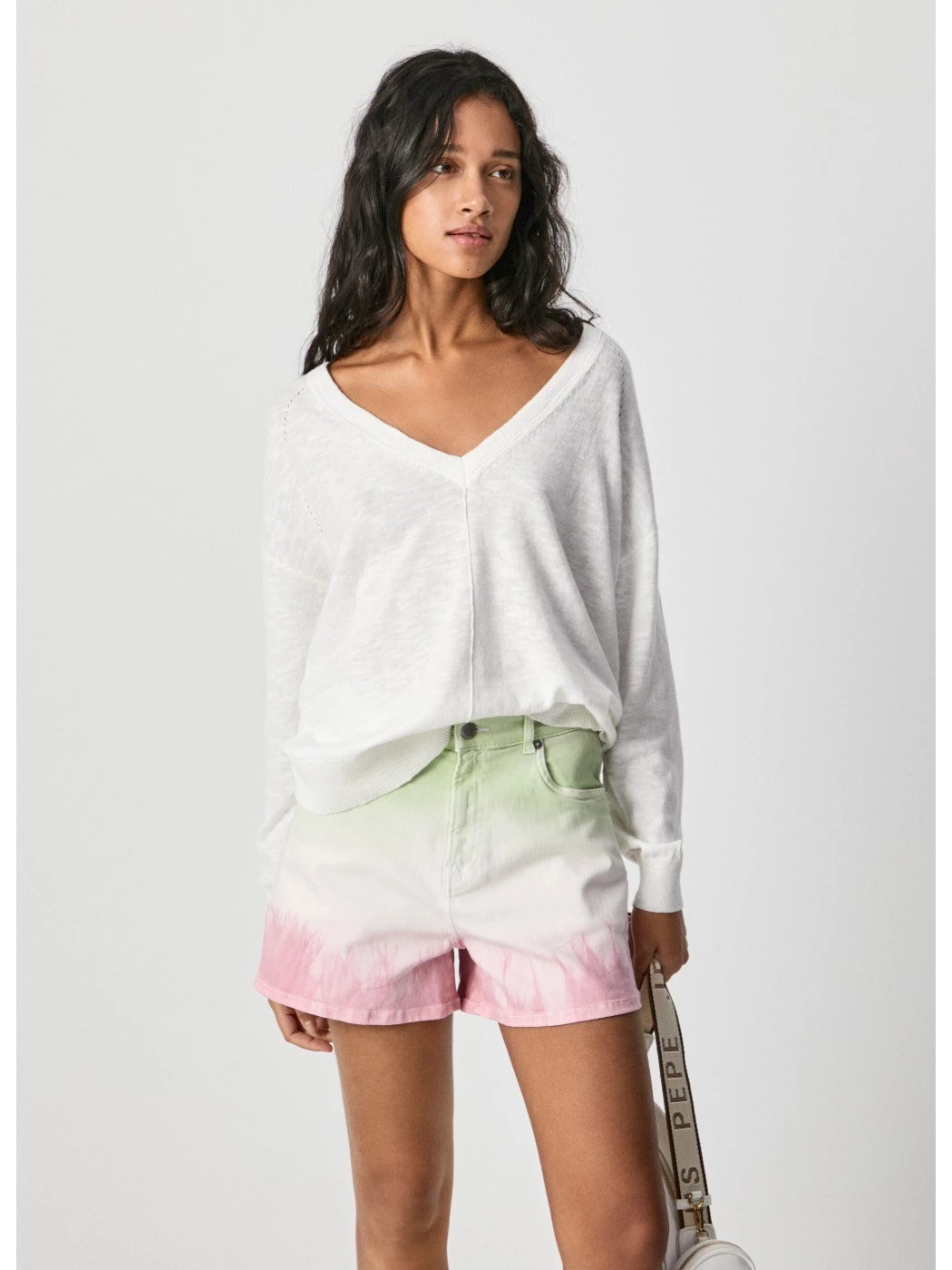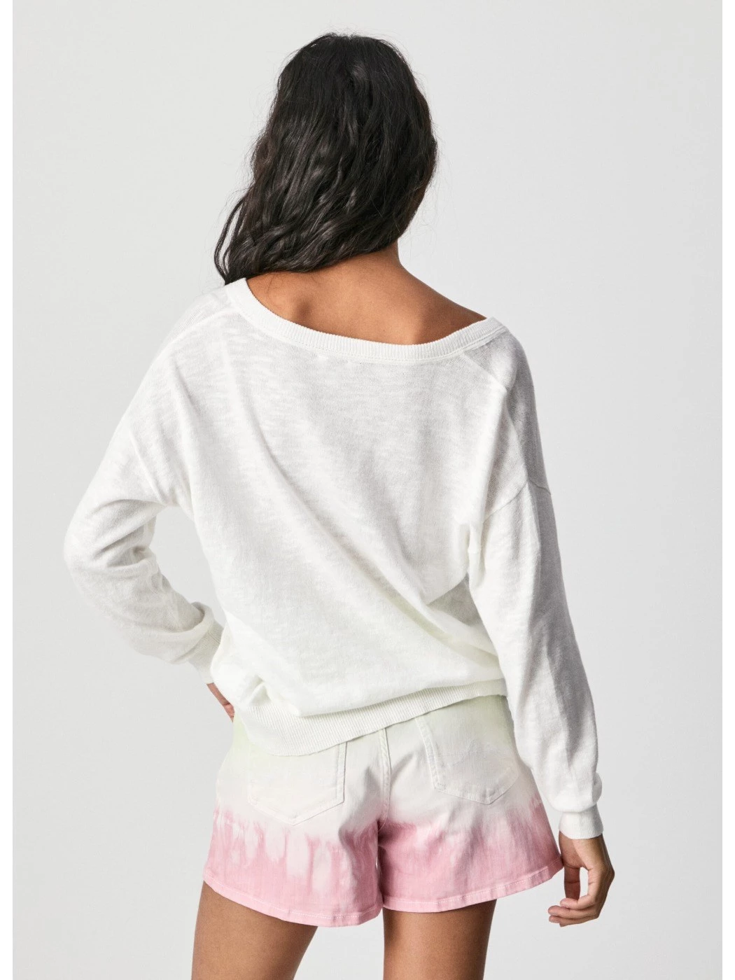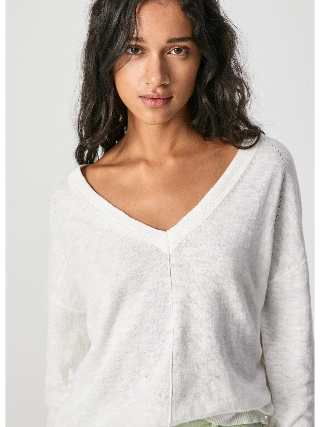 cod. PL701837 Maglione leggero - Tessuto morbido - Collo a V - Tinta unita - Dettaglio cucitura frontale - Dettaglio a coste su collo, orlo e maniche - Logo spilla metallica