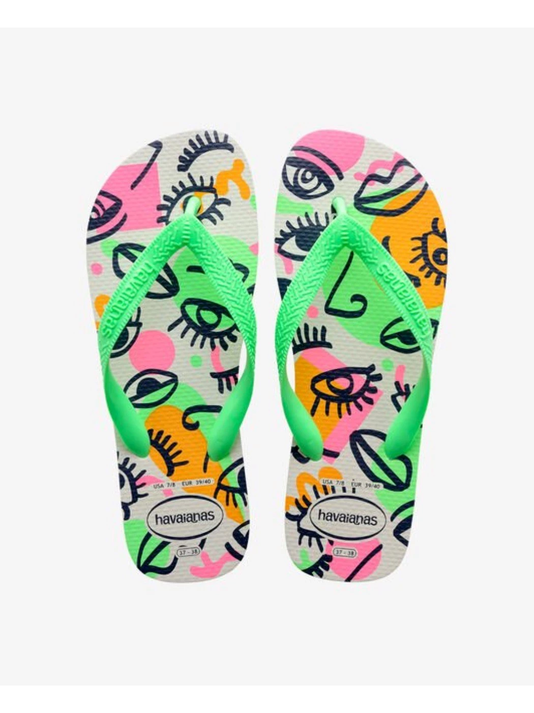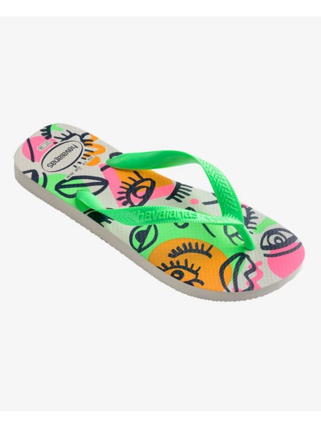 Le infradito Top Cool sono decorate con illustrazioni di occhi, nasi e bocche in vibranti colori fluo. Le infradito più artistiche e vivaci, per immergere i tuoi piedi in un mondo di colori.