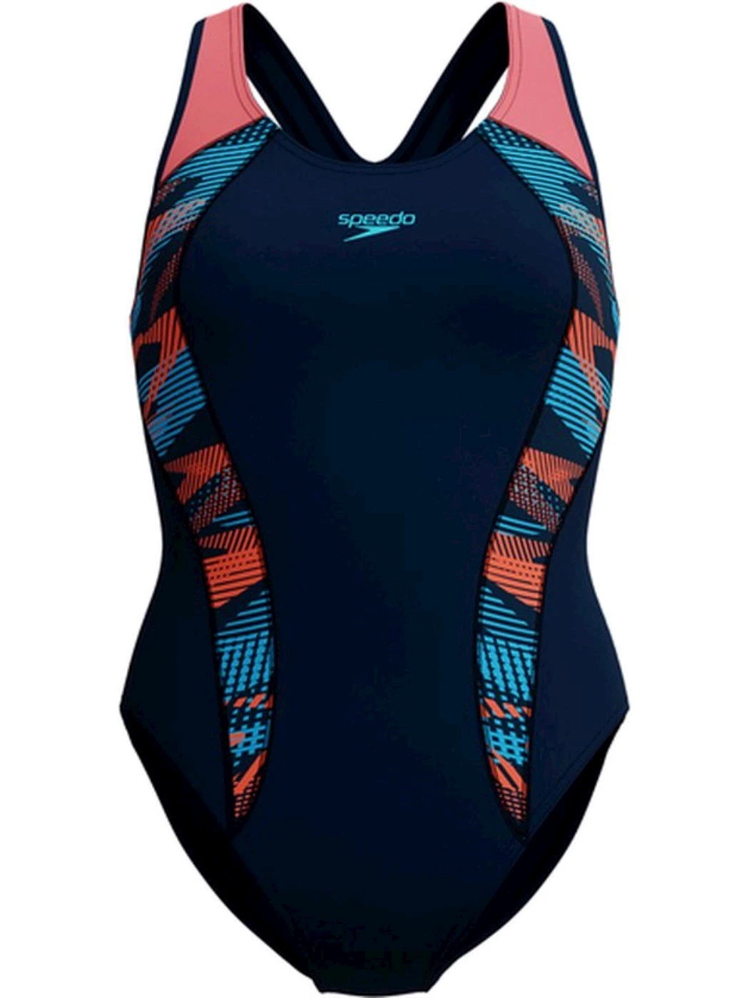 Costumi da bagno eleganti e performanti. Affronta l'allenamento indossando il nostro elegante costume da bagno Laneback nero con spalline blu a contrasto e inserti grafici in plastisol di ispirazione tecnologica. Il taglio medio della gamba e la fascia sotto il seno assicurano comfort e sostegno durante l'allenamento. Progettato per durare a lungo e fare bene all'ambiente, questo capo è realizzato con il nuovo tessuto ECO Endurance+, resistente al cloro al 100%, ad asciugatura rapida e realizzato con il 50% di materiali riciclati.