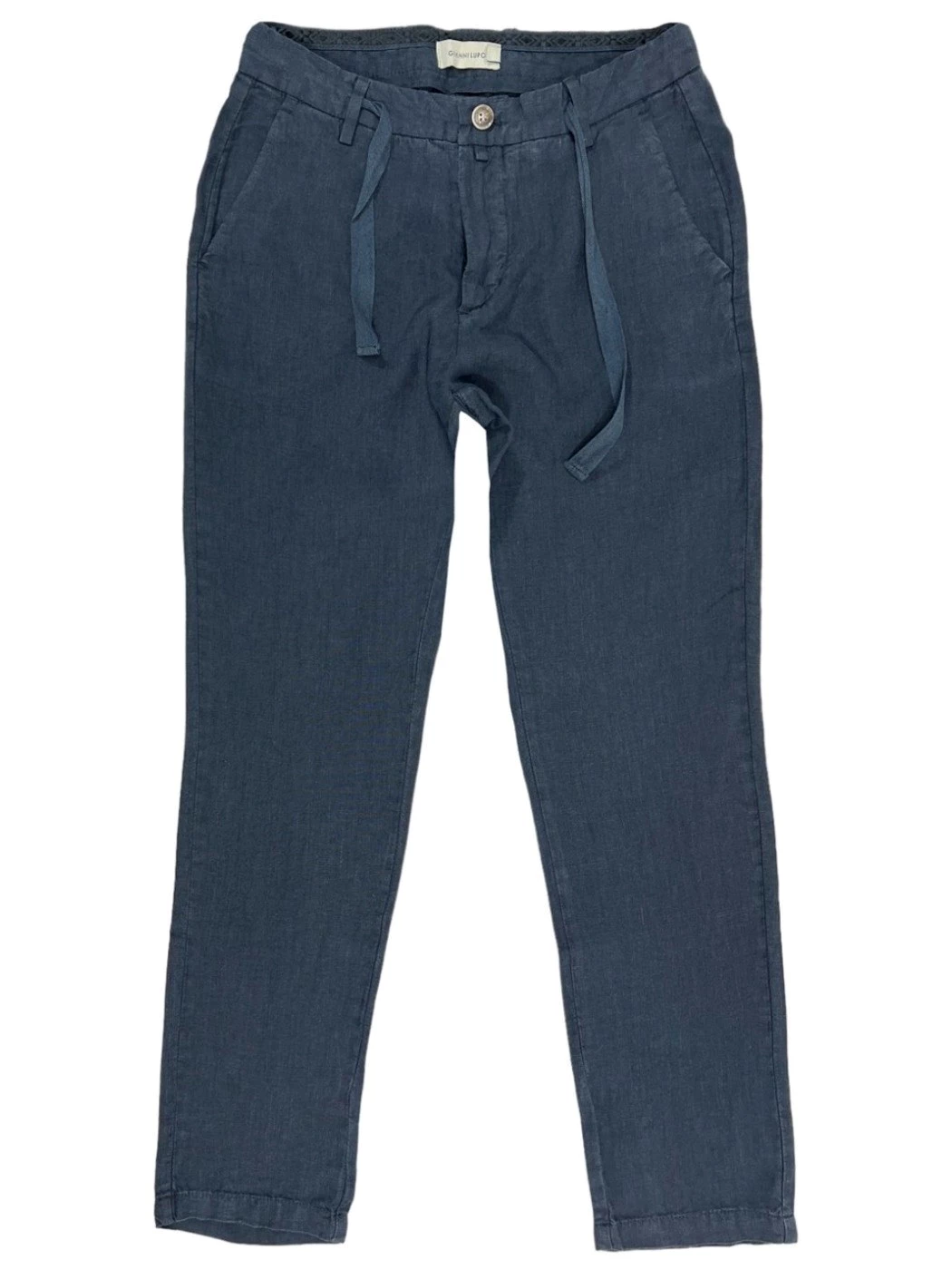 Il pantalone Gianni Lupo per uomo colore blu è un must-have della nuova collezione 2023. Con una vestibilità morbida e una lunghezza alle caviglie, questo modello presenta tasche America, un laccio in vita regolabile, una chiusura con bottone e cerniera e un tessuto in lino al 100%. Una scelta perfetta per un look casual e confortevole.