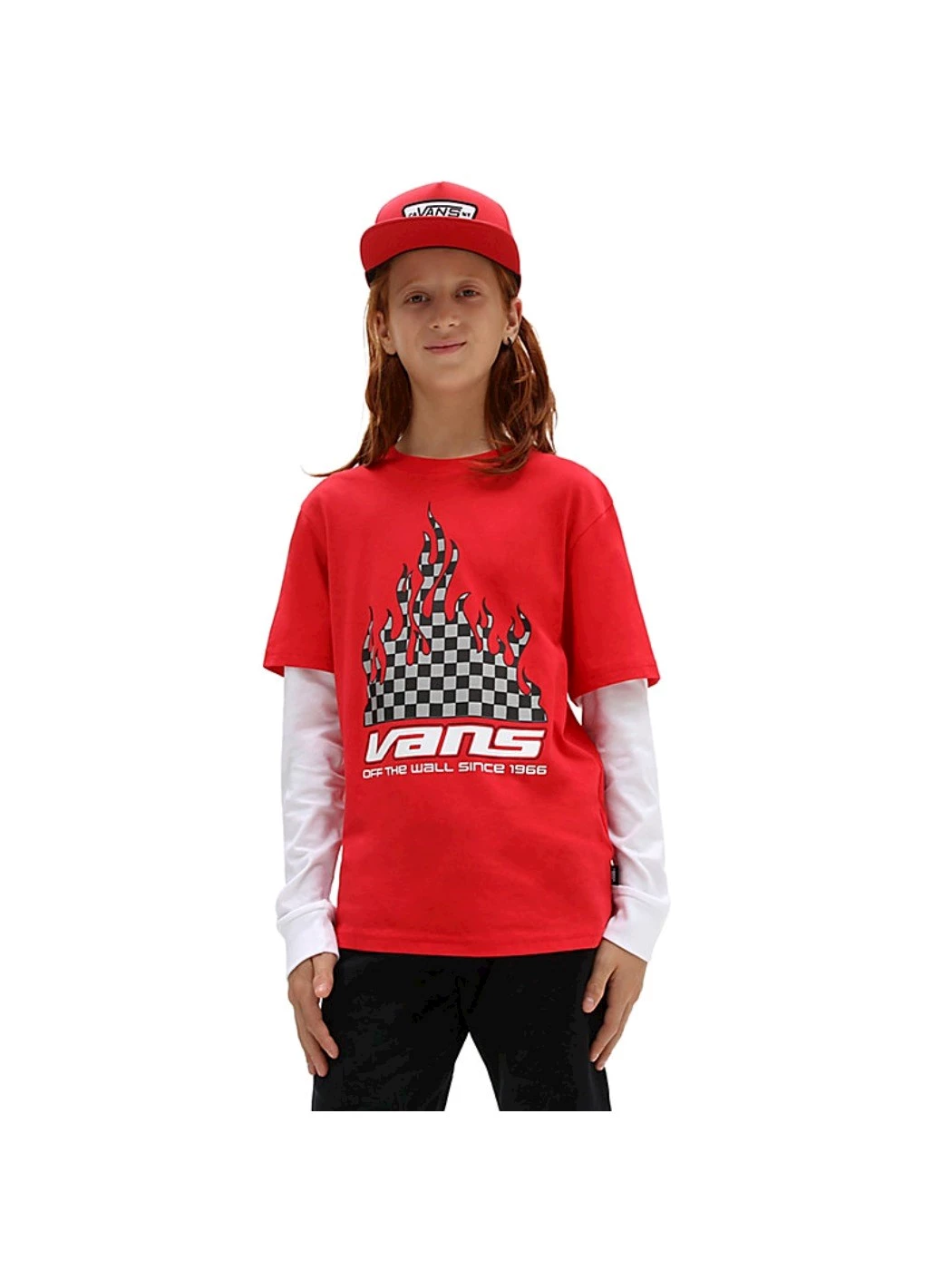 La T-shirt Vans Reflective Checkerboard Flame Twofer da bambino è un modello girocollo con maniche a strati e logo Vans con motivo a fiamme e dettagli riflettenti sul davanti. Presenta inoltre una grafica con logo sulla manica destra.