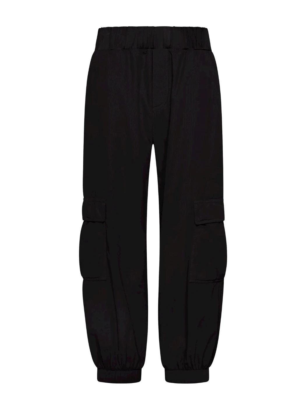 cod. D12367 cinturino in raso con elastico, tasche ai fianchi e applicate sulla gamba, finta patta, polsi elastici