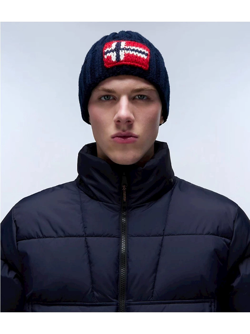 cod. SEMIURY Realizzato in calda maglia a costine, il berretto con pompon Semiury è rifinito con l'iconica bandiera norvegese sul davanti.