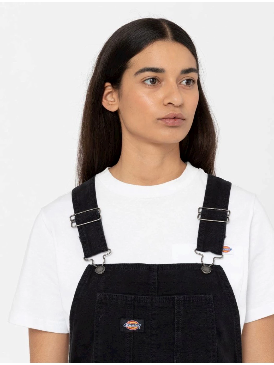 The Dickies Duck Canvas Short Bib is our signature regular fit women's short overall with authentic fabrication and detailing. Sitting above the knee and featuring a large bib pocket on the front, two back pockets with tool insert, hammer loop and brass rivet button closure. Made in our durable 12 oz brushed duck canvas, available in desert sand, black and cloud. A timeless utility piece that's perfect for the summer. Materials: DUCK CANVAS, 100% COTTON, 407 GSM.
