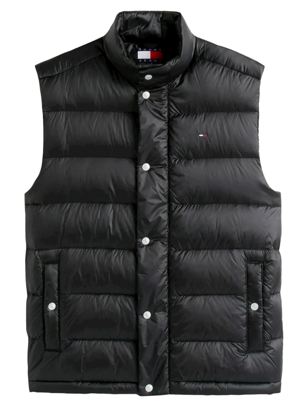 Lo smanicato, dal design essenziale ma ricco di dettagli funzionali, è dotato di un'esterno idrorepellente e di una calda imbottitura in piuma per le giornate più fredde.