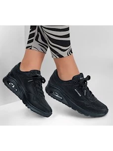 Fatti notare con lo stile grintoso e brillante di Skechers Street(TM) Uno - Shiny Scale. Questo modello fashion allacciato presenta una tomaia in durabuck con stampa effetto serpente riflettente, una soletta ammortizzata Skechers Air-Cooled Memory Foam(TM) e un'intersuola con ammortizzazione ad aria visibile Skech-Air®.