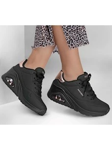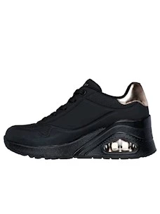 Rinnova il tuo guardaroba con un tocco di comfort indossando Skechers Street(TM) Uno Wedge - HI Steps. Questo modello fashion presenta una tomaia in durabuck con finiture in duraleather metallizzato, soletta Skechers Air-Cooled Memory Foam® e un'intersuola a zeppa platform con ammortizzazione ad aria visibile Skech-Air®.