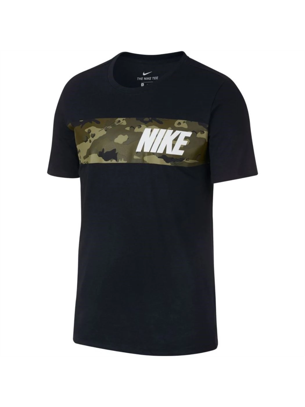 Grafica camouflage a blocchi 'NIKE' stampata sul davanti.