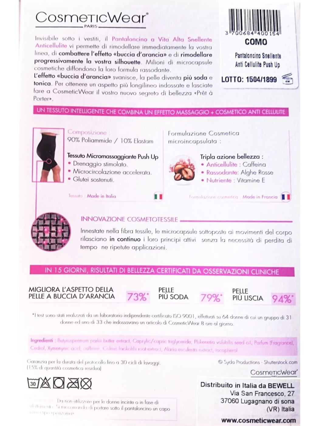 cod. SHORT-SNELLENTE Ciclista a vita alta Snellente Anticellulite Cosmeticwear. Rimodella la siluette elimina l 'effetto buccia d arancia, modella i gluitei. 82% efficacia snellente in 15 giorni