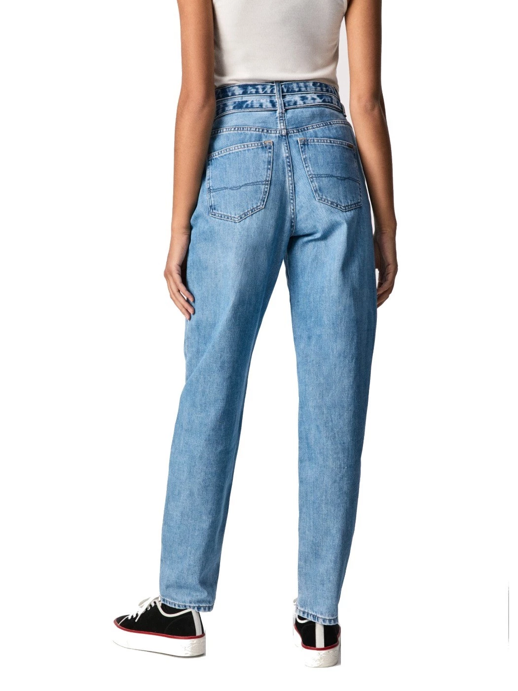 cod. PL204139R Jeans WILLOW PEPE JEANS con doppia fibbia Lavaggio Wiser Wash, una tecnologia ecosostenible senza sostance chimiche e senza sprechi d´acqua Denim pesante