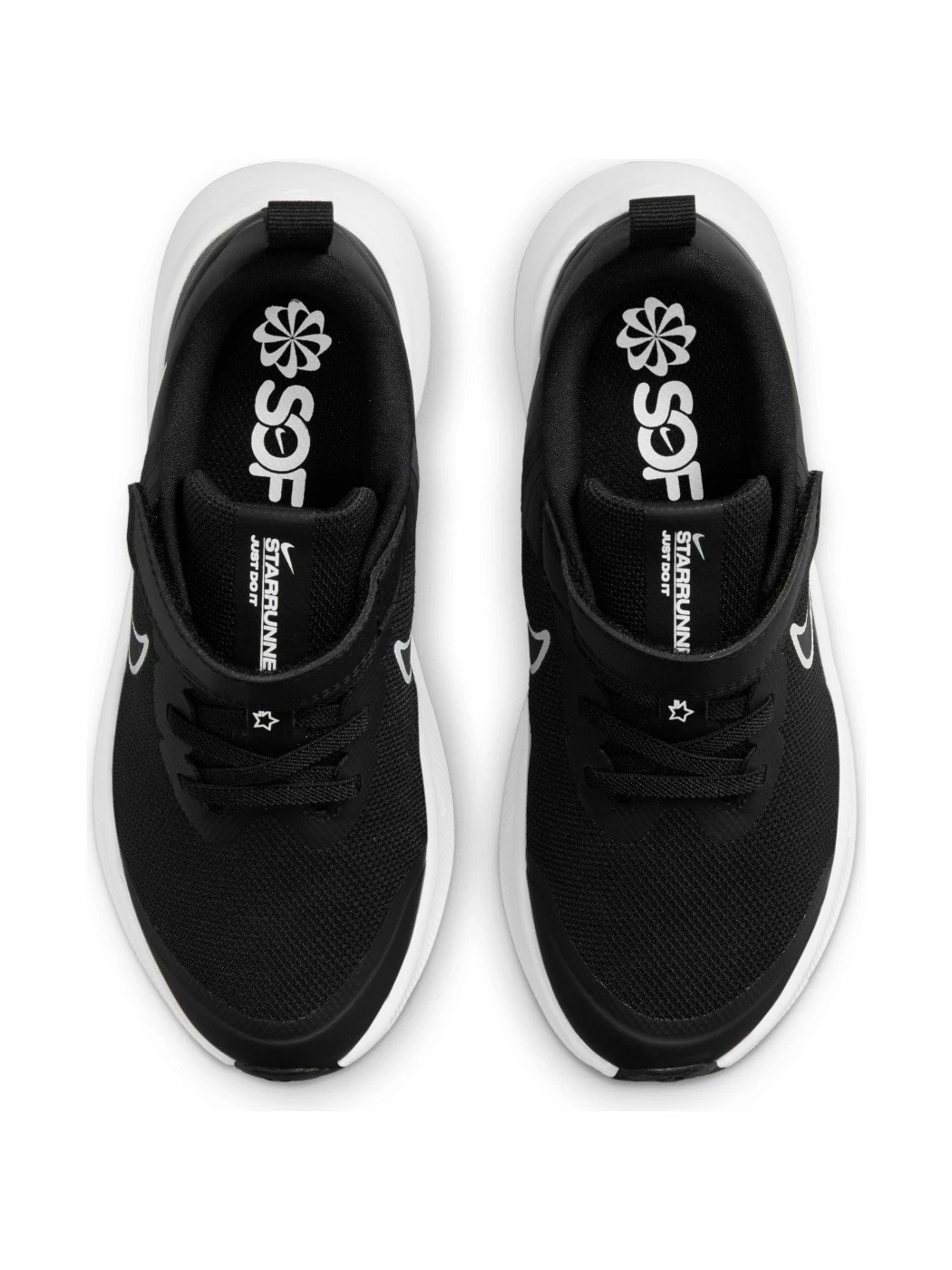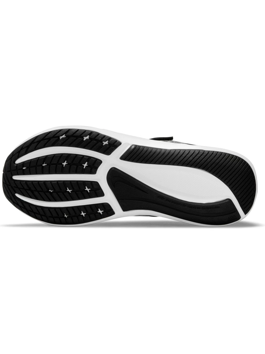 Suola in gomma con intagli progettati per una trazione multidirezionale. Stella sagomata vicino alla punta che raffigura una stella cadente lungo tutta la suola.