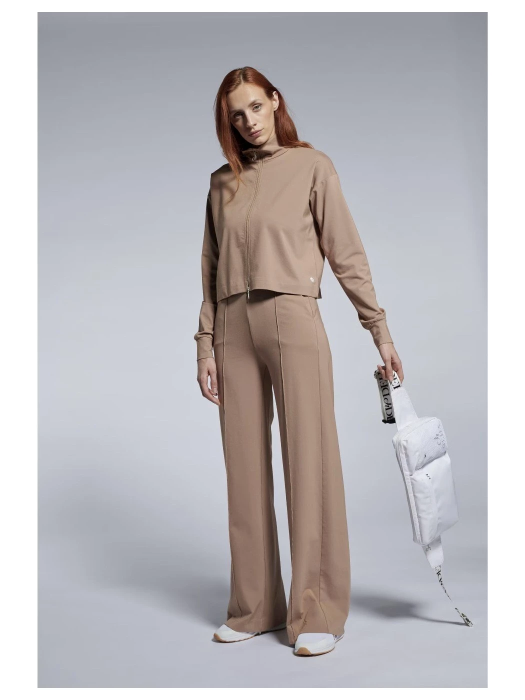 cod. D63426 tessuto punto Milano leggero misto viscosa vita elastica tasche laterali vestibilità morbida - gamba larga