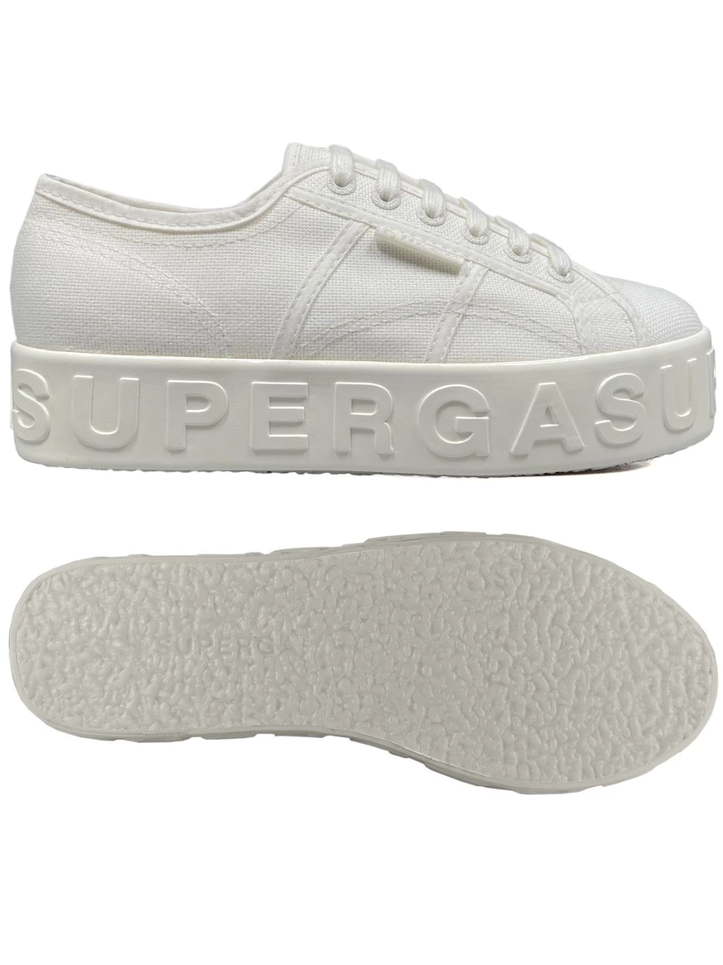 Un'autentica dichiarazione di stile che combina elementi classici e dettagli innovativi, linee versatili e accenti distintivi. Questa Superga 2790 da donna aggiorna il look con la zeppa alta 4 cm e il maxi lettering lucido stampato a rilievo lungo tutto il foxing.