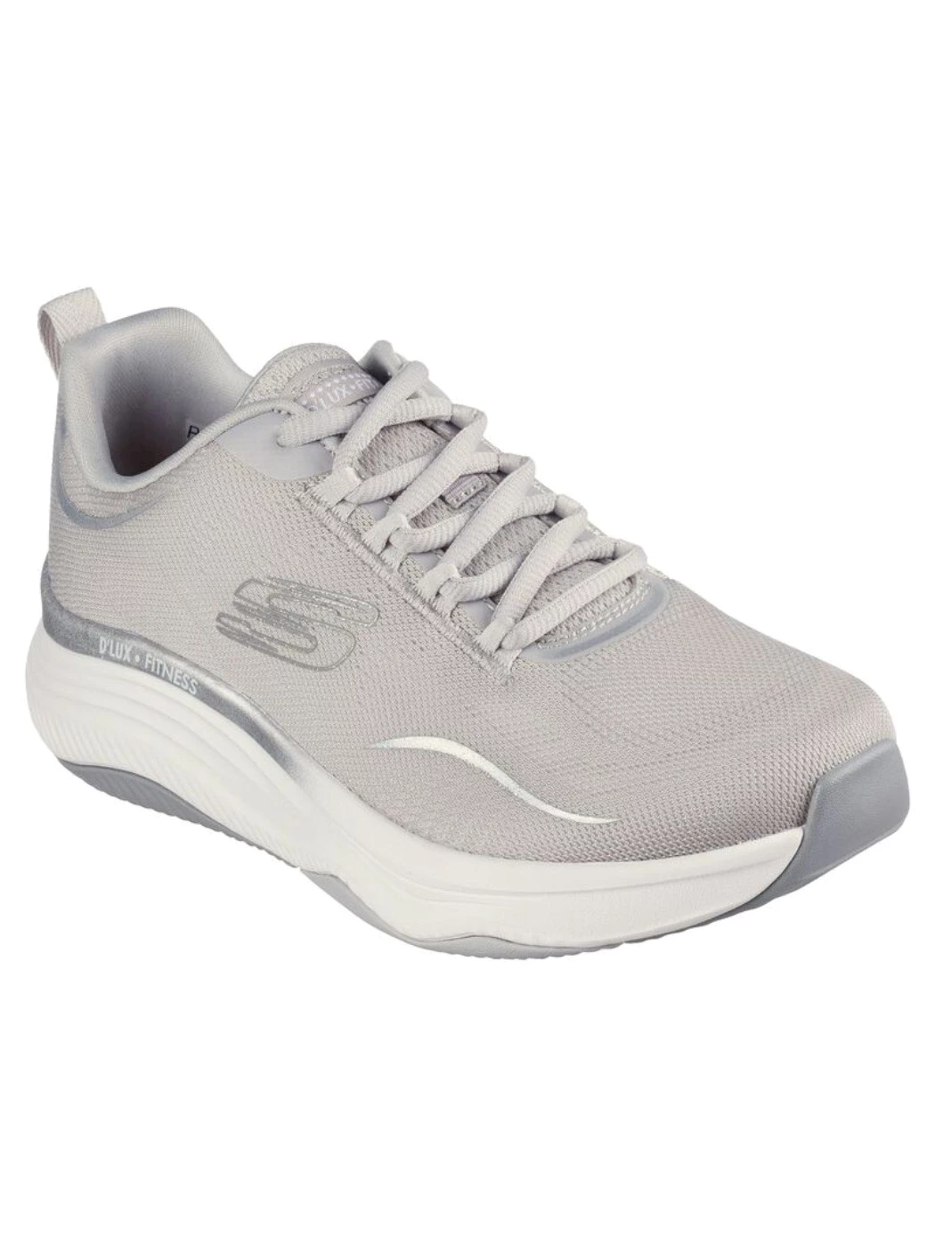Mantieni la motivazione durante gli allenamenti con il comfort ammortizzato di Skechers Relaxed Fit®: D'Lux Fitness - Pure Glam. Questa scarpa allacciata presenta una tomaia in mesh ingegnerizzato con profilo metallizzato e soletta ammortizzata Skechers Air Cooled Memory Foam®.
