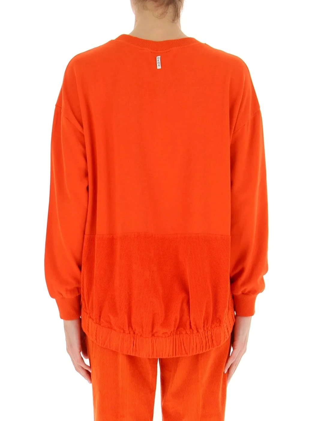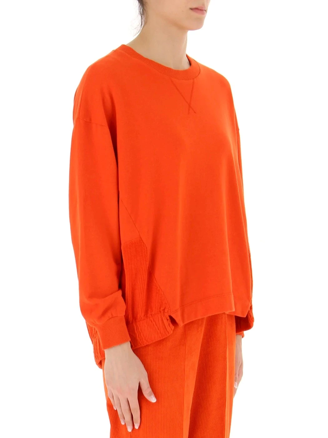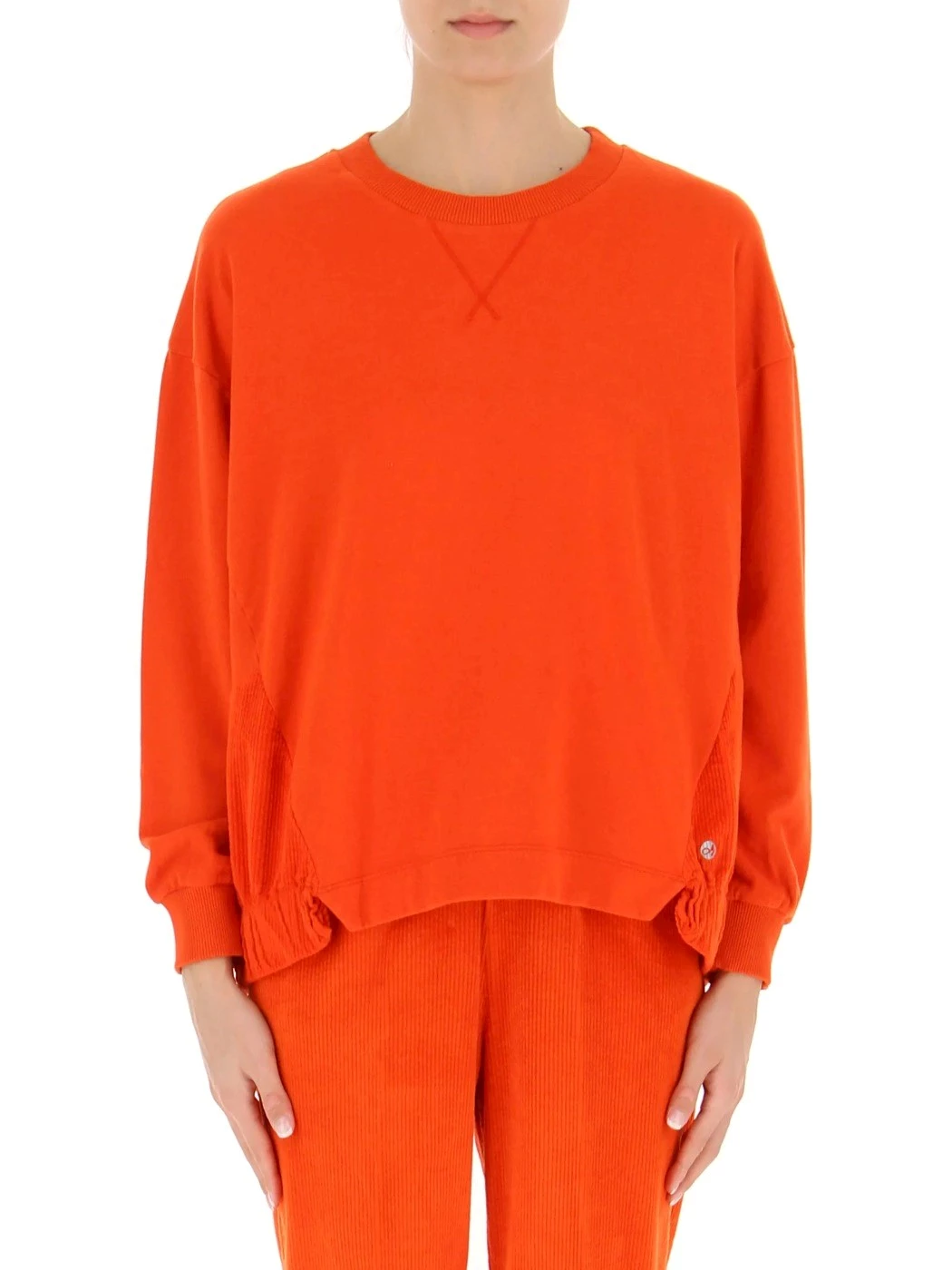 cod. D93511 tessuti combinati felpa garzata di cotone 210 g e inserti in velluto stretch 210 g girocollo, fondo arrotondato, più lungo dietro, polsi in costina vestibilità comoda tinto in capo con prodotti ecosostenibili