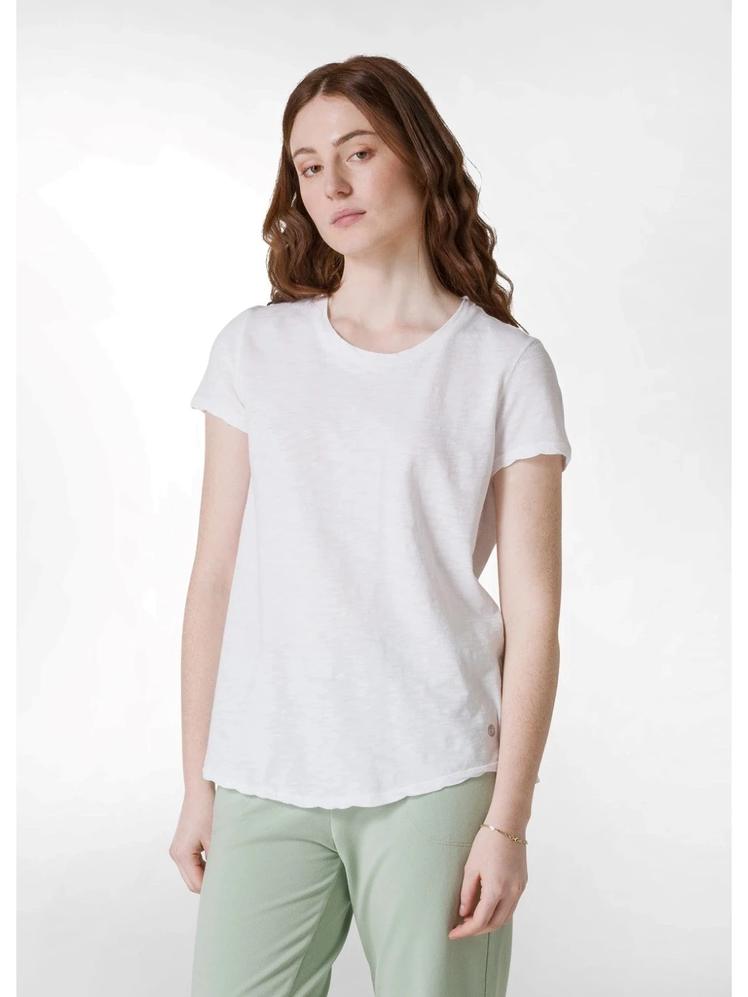 Il tessuto fiammato morbido e leggero offre una vestibilità comoda e rilassata garantendo una sensazione di piacevolezza e libertà di movimento. La texture fiammata aggiunge un tocco interessante e distintivo alla t-shirt.