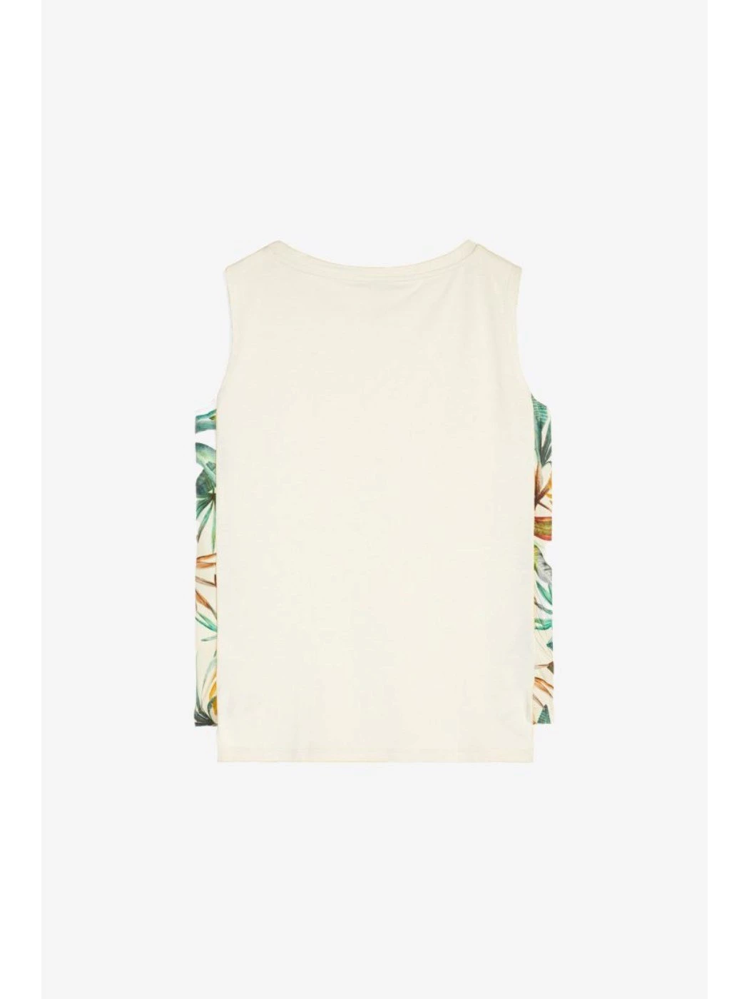 T-shirt da donna in carezzevole jersey modal illuminata dagli inserti sui lati in luminoso tessuto satin stampato all over con una fantasia tropicale. La vestibilità leggermente svasata e la gradevole morbidezza del tessuto seguono le linee del corpo assecondando comodamente i tuoi movimenti.