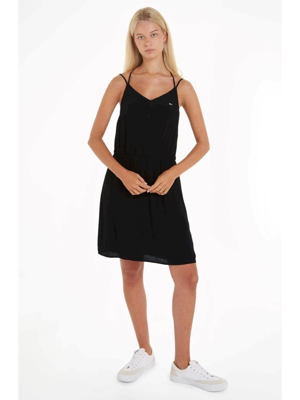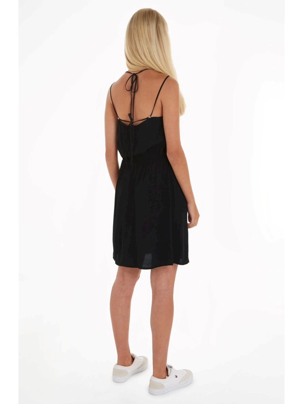 A tie-up halterneck and cinched waist add femininity to this strappy dress tailored from viscose flowy fabric and finished with subtle branding.