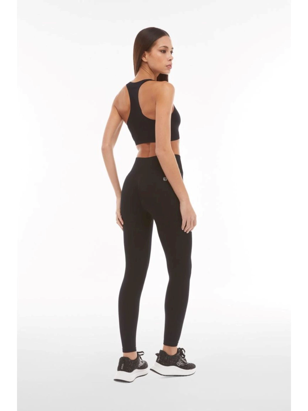 Il design con scollo tondo e retro a vogatore permette ampiezza di movimento mentre la fascia sottoseno lavorata in costina offre una maggiore stabilità quando ti muovi. Il logo metallizzato stampato sul fronte a sinistra e il logo jacquard sotto allo scollo posteriore completano i dettagli di stile.