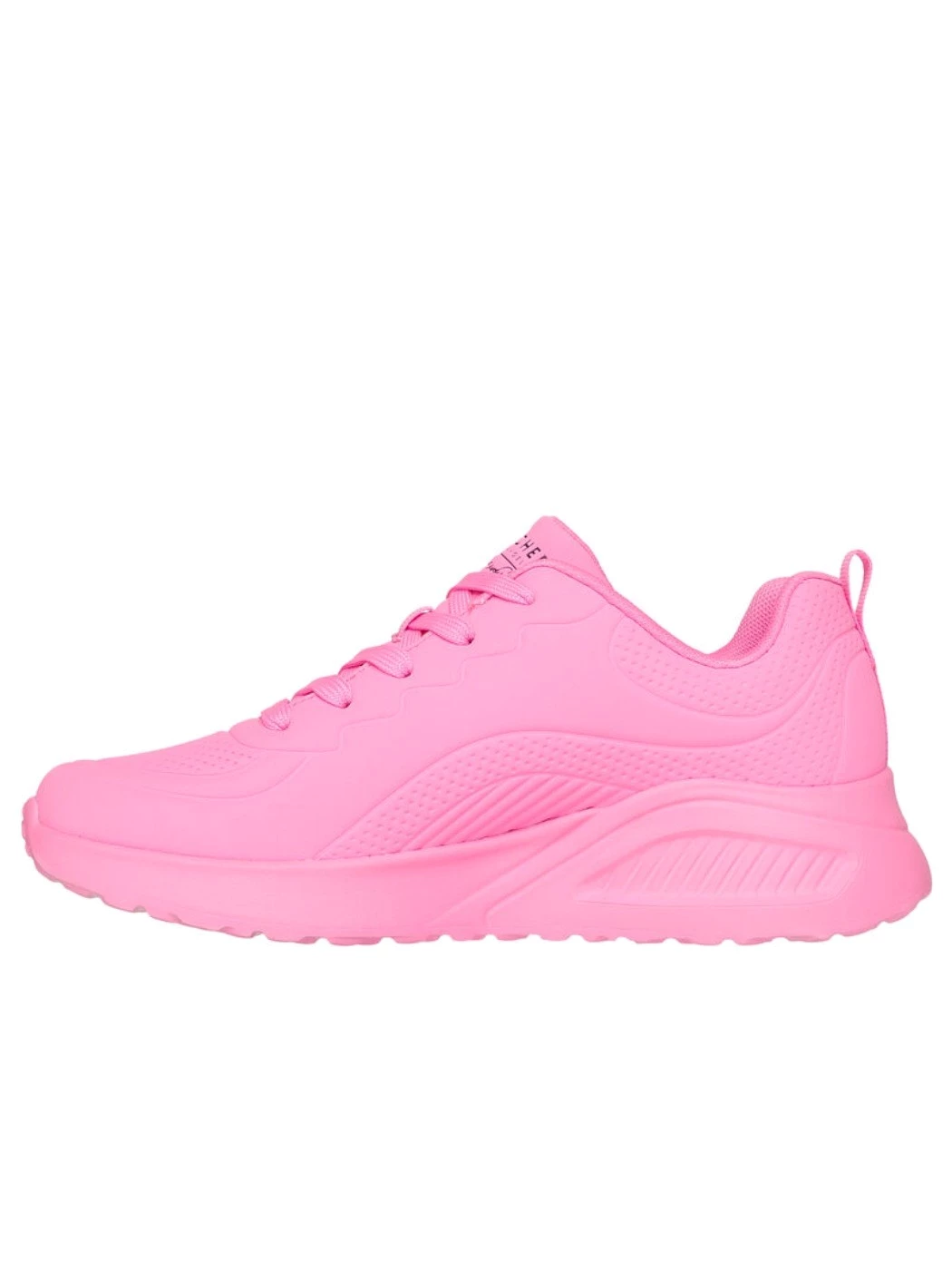 Internationally renowned muralist James Goldcrown brings his iconic #Lovewall heart designs to Skechers in this inspiring collaboration. Show your creative style with the Skechers x JGoldcrown: Skechers Street(TM) Uno Lite - Heart of Hearts. This lace-up fashion sneaker features a print of the artist's signature heart design that extends to the outsole, synthetic durabuck and perforated trimmed upper with a Skechers Air-Cooled Memory Foam® insole, plus a platform wedge midsole.