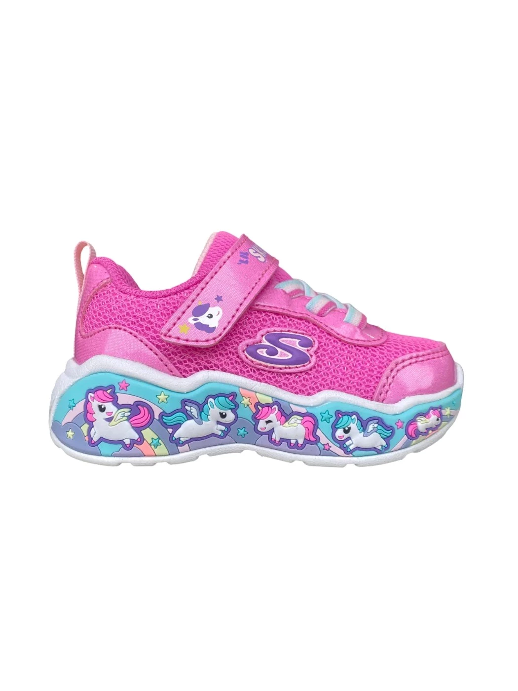 Questa scarpa da ginnastica Skechers con laccio elastico e velcro è perfetta per le bambine che amano la fantasia unicorno! La suola decorata in rilievo non solo aggiunge un tocco di stile, ma offre anche un'eccellente aderenza per correre e giocare. Facile da indossare e comoda per una giornata di divertimento senza limiti.