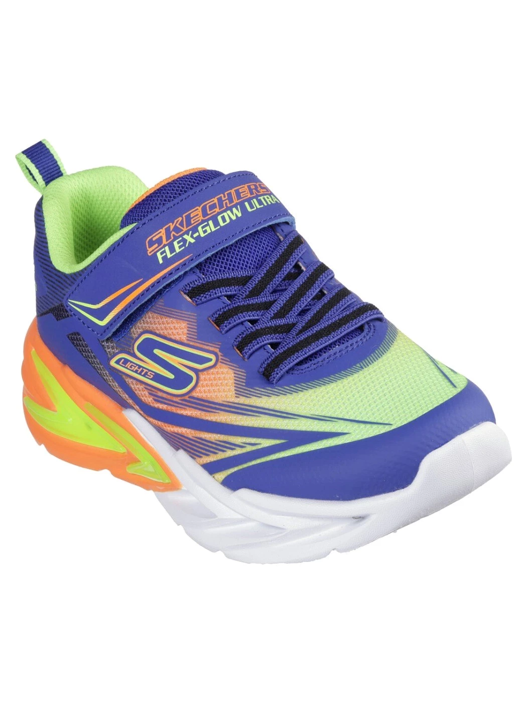 Ravviva la sua giornata con le divertenti luci di Skechers S-Lights®: Flex-Glow Ultra. Questa sneaker colorata presenta una tomaia in mesh sfumata con applicazioni in materiale tecnico, lacci elasticizzati fissi, Adaptive Closure e un inserto tecnico luminoso sull'intersuola.