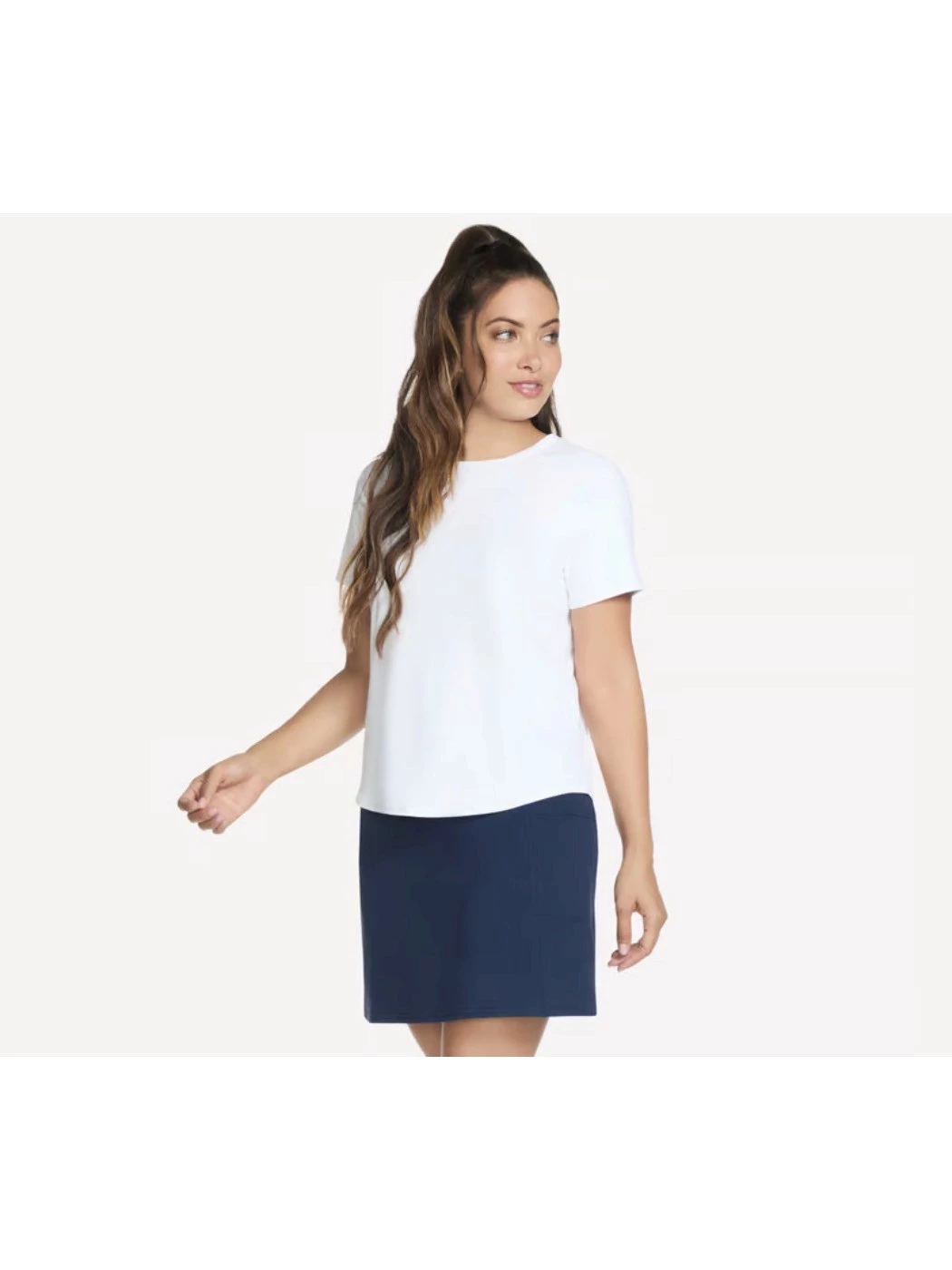 Scegli un nuovo capo irrinunciabile per gli allenamenti con Skechers GO DRI® STRIDE Performance Tee. Questa T-shirt a maniche corte leggera è realizzata in tessuto GO DRI STRIDE(TM), che assorbe l'umidità e si asciuga rapidamente, e presenta orlo asimmetrico e cuciture sul carré anteriore con dettagli riflettenti.