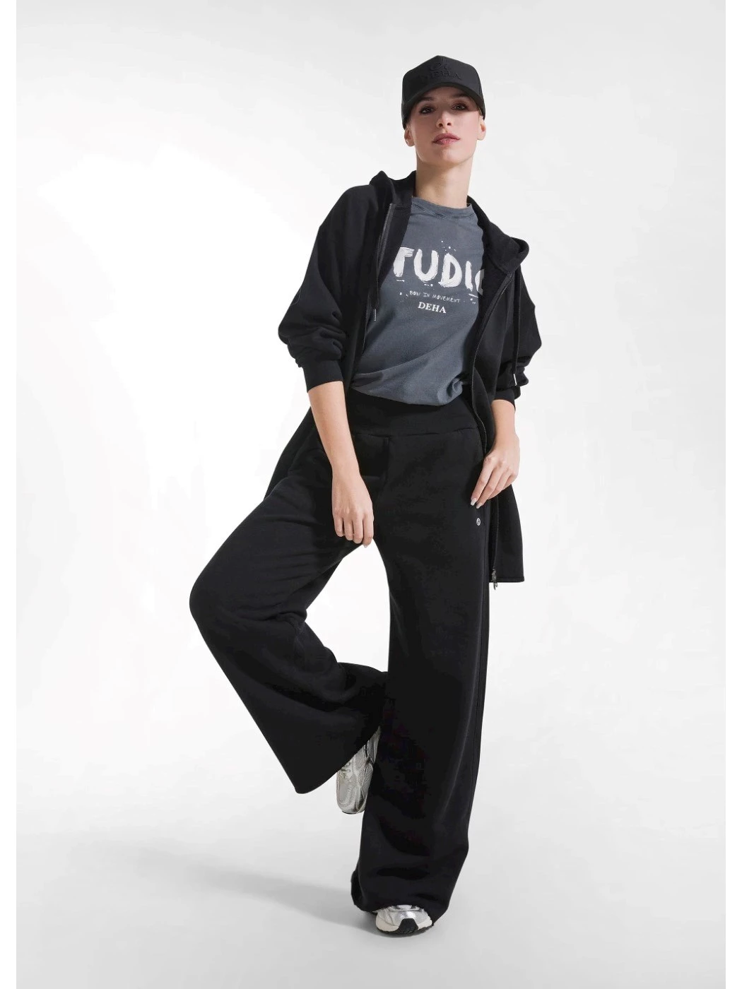 cod. C32079 PANTAPALAZZO FELPATO DEHA 100% cotone 300 g con garzatura interna Vita alta avvolgente, tasche a filo sui fianchi Vestibilità regolare con gamba ampia Tinto in capo con processo ecosostenibile