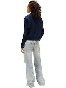 cod. W20159 Versatile pullover in puro cotone Collo, polsini e fondo a coste Bandierina Tommy ricamata sul petto